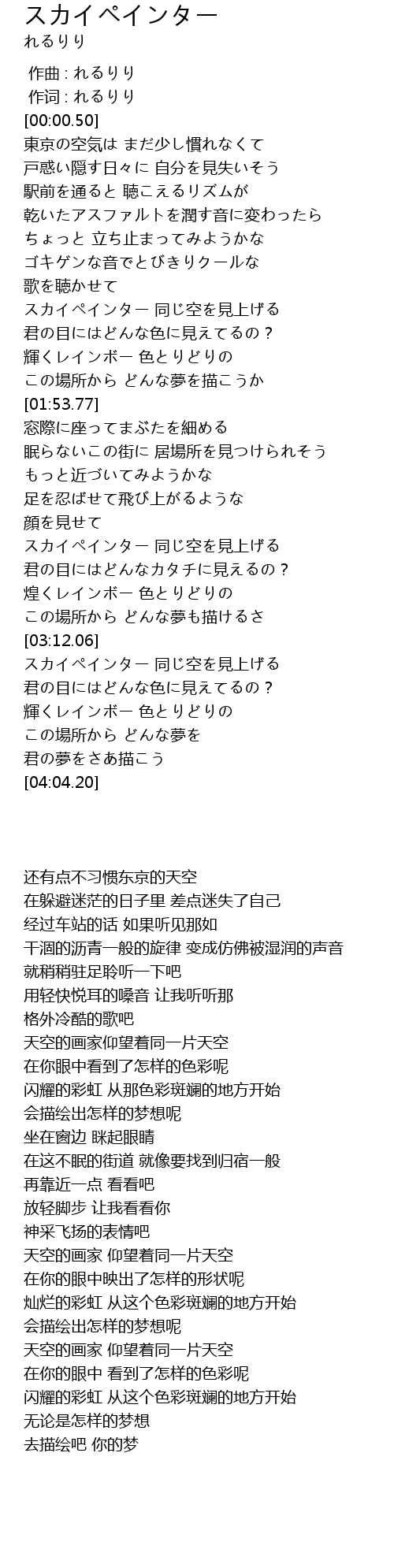| [03:26.85] | スカイペインター 同じ空を見上げる |