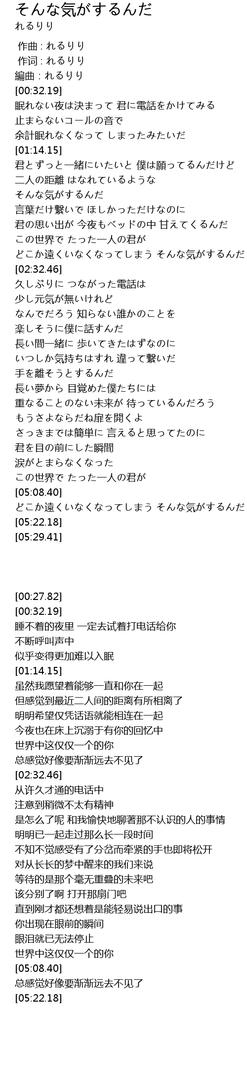 | [00:01.00] | 作词 : れるりり |