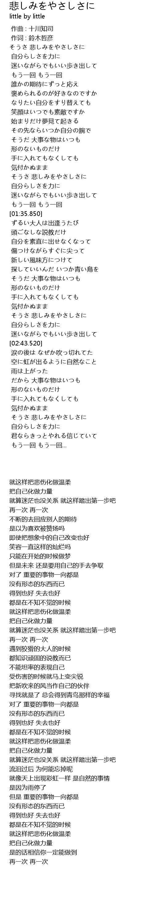 | [03:35.620] | 君ならきっとやれる信じていて |