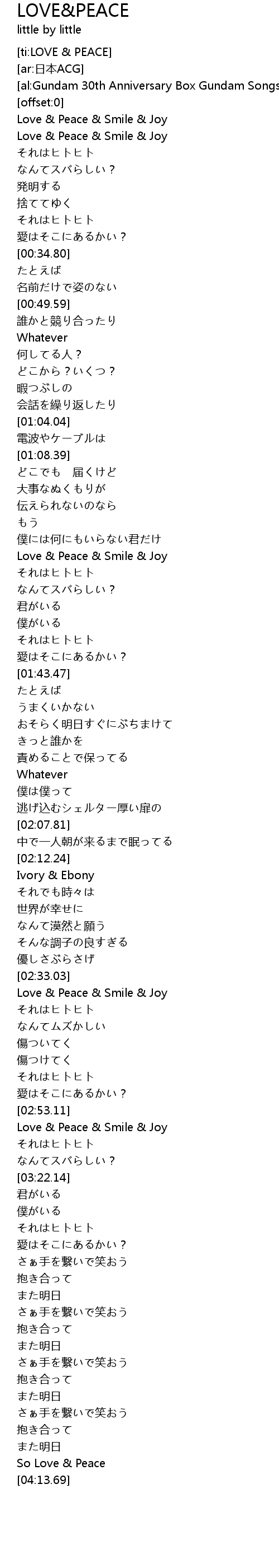 | [02:34.12] | Love & Peace & Smile & Joy |