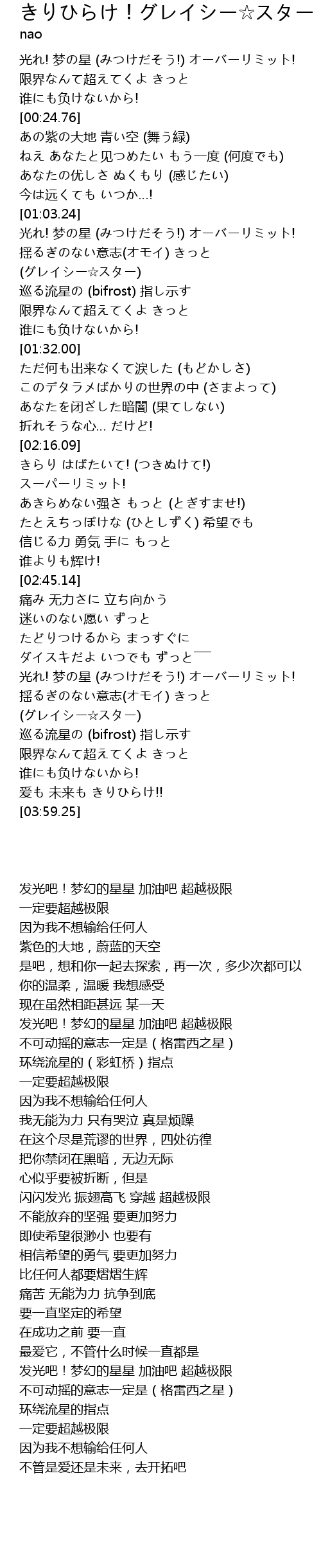 | [03:31.63] | 揺るぎのない意志(オモイ) きっと (グレイシー☆スター) |