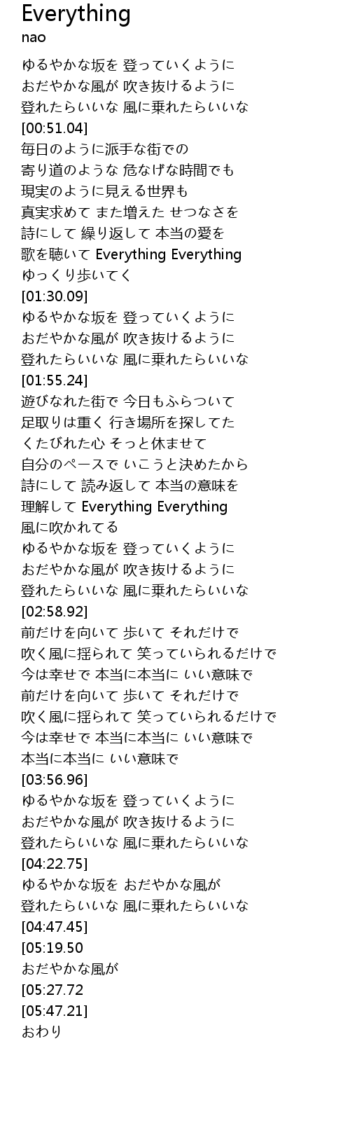 | [01:23.14] | 歌を聴いて Everything Everything |