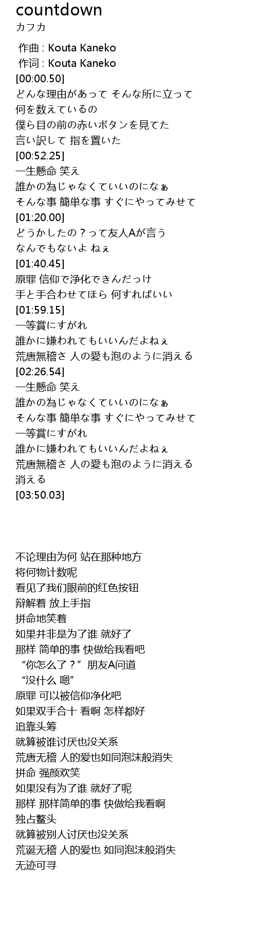 | [00:00.16] | 作词 : Kouta Kaneko |