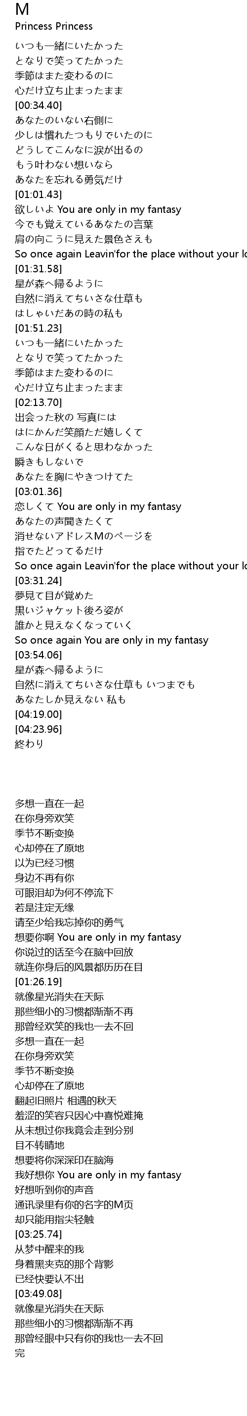 | [03:02.47] | lian You are only in my fantasy |