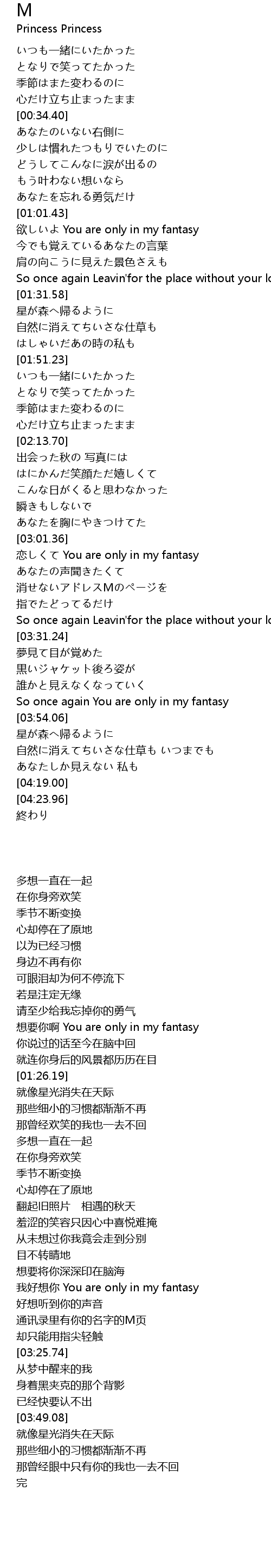 | [01:03.06] | 欲しいよ You are only in my fantasy |