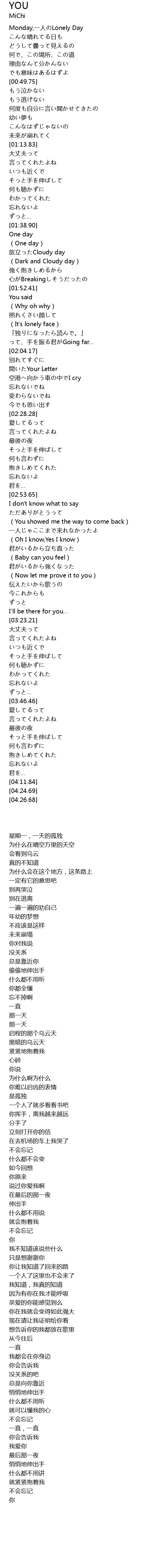| [00:26.03] | Monday, yī rén Lonely Day |