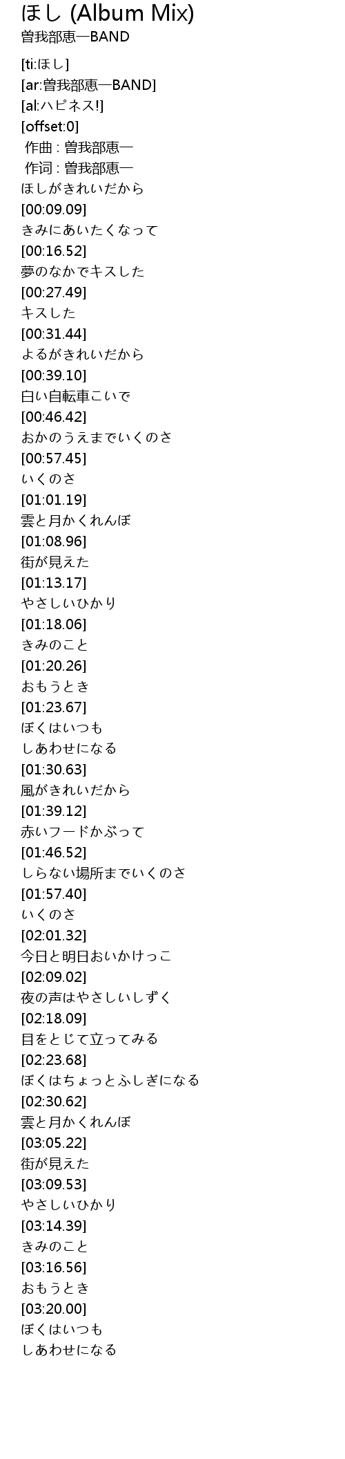 | [00:01.00] | 作词 : 曽我部恵一 |