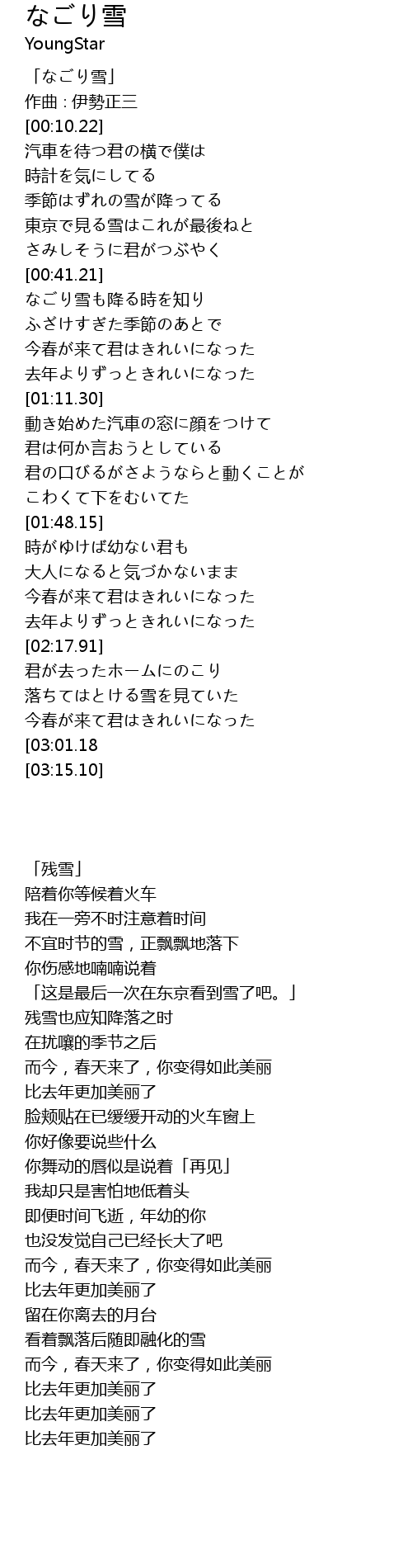 | [02:37.99] | 落ちてはとける雪を見ていた |