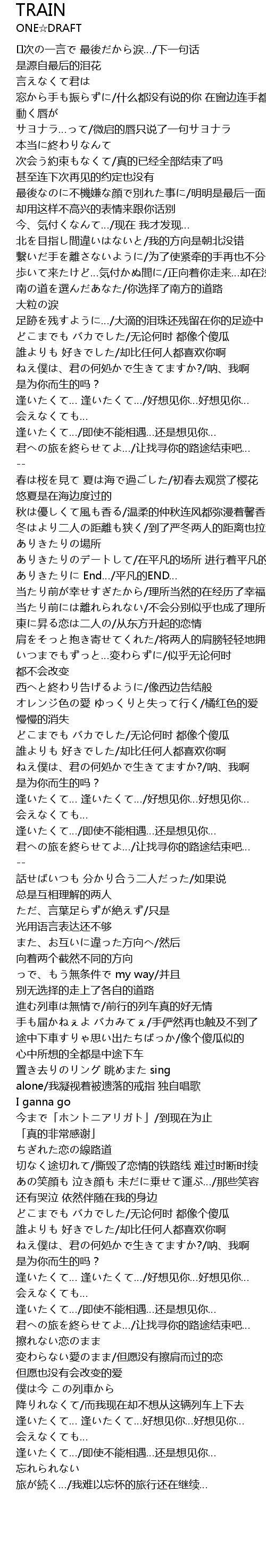 | [03:51.460] | 僕は今 この列車から 降りれなくて/而我现在却不想从这辆列车上下去 |
