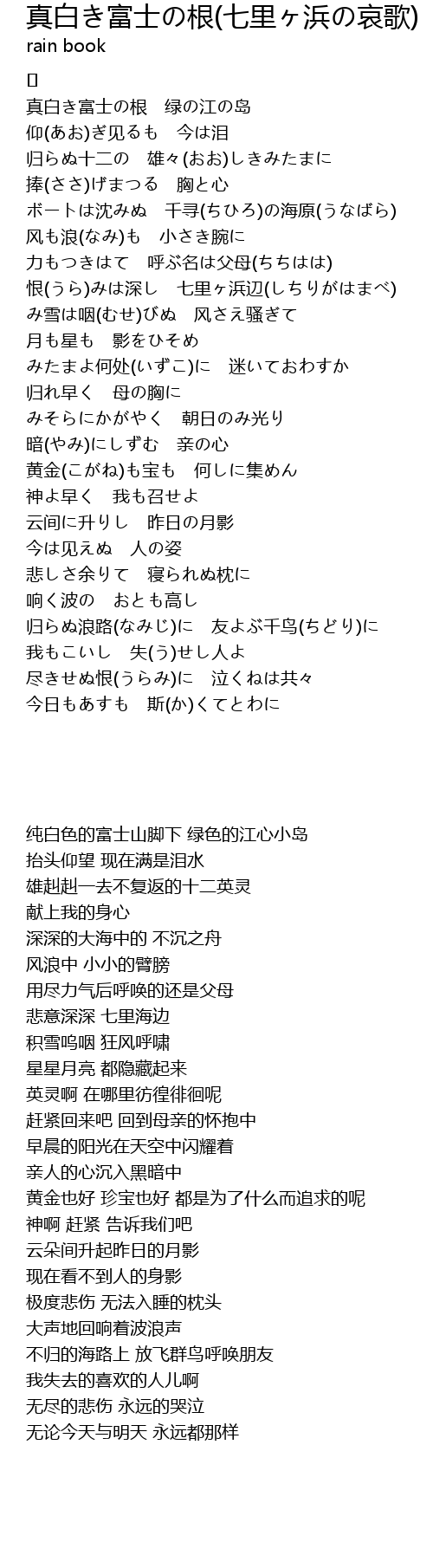 | Song | 真白き富士の根(七里ヶ浜の哀歌) |