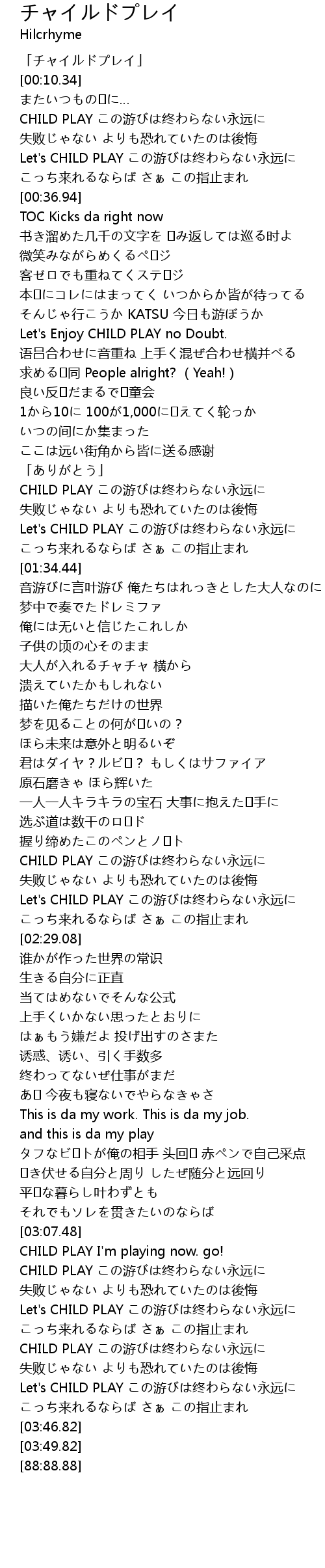 | [03:09.42] | CHILD PLAY I' m playing now. go! |