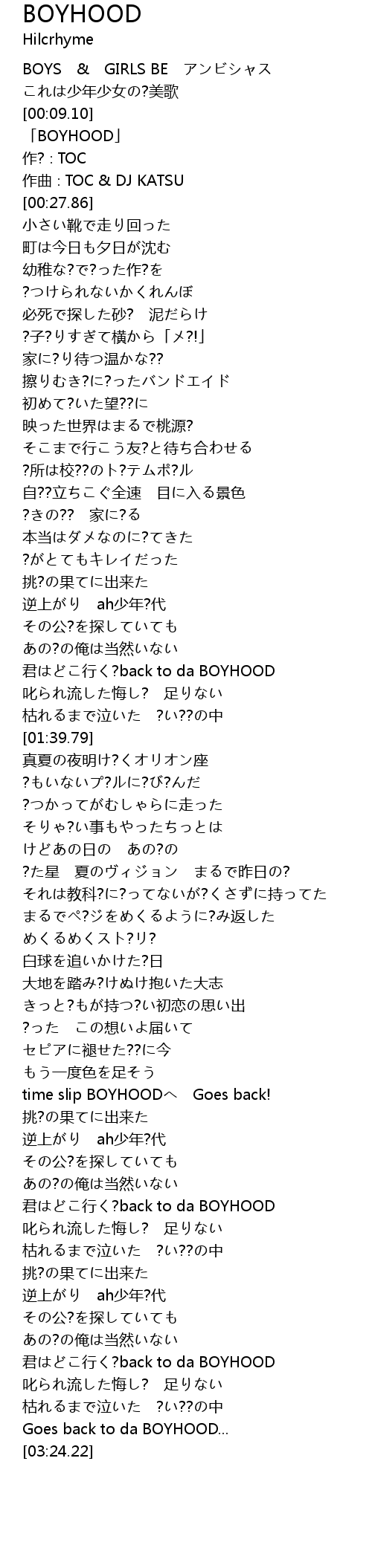 | [03:06.66] | 君はどこ行く?back to da BOYHOOD |