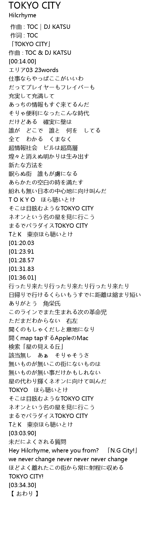 | [03:31.96] | TOKYO CITY! |