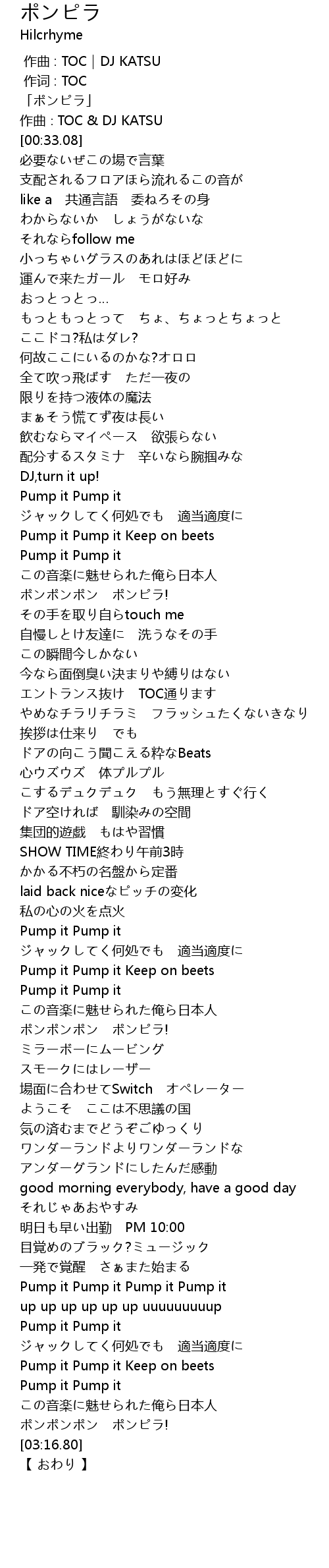 | [00:01.08] | 「ポンピラ」 |