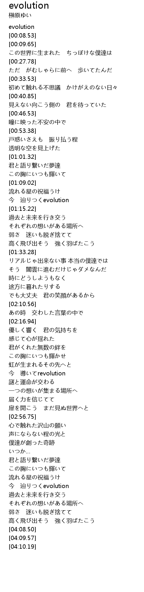 | [00:34.85] | 初めて触れる不思議 かけがえのない日々 |