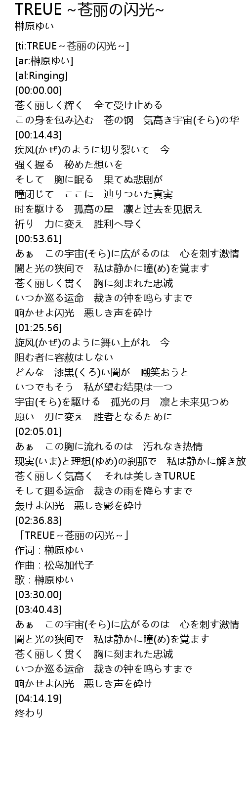 | [02:40.00] | 「TREUE~苍丽の闪光~」 |