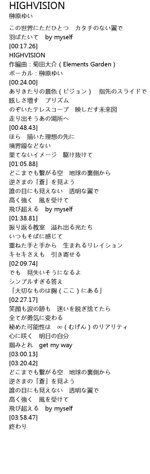 | [03:50.13] | 飛び超える by myself |