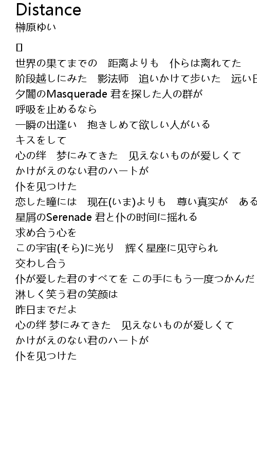 | 世界の果てまでの 距离よりも 仆らは离れてた | |