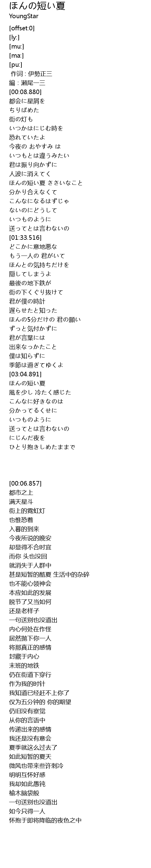 | [03:26.352] | ほんの短い夏 |