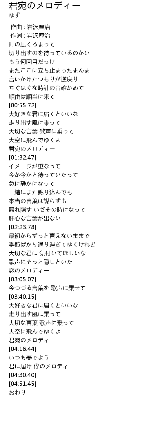 | [04:11.86] | 君宛のメロディー |
