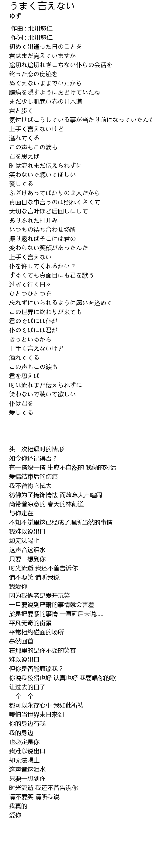 | Song | うまく言えない |