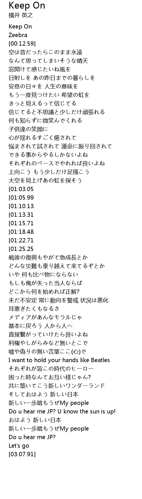 | [02:57.72] | 新しい一歩踏もうぜMy people |
