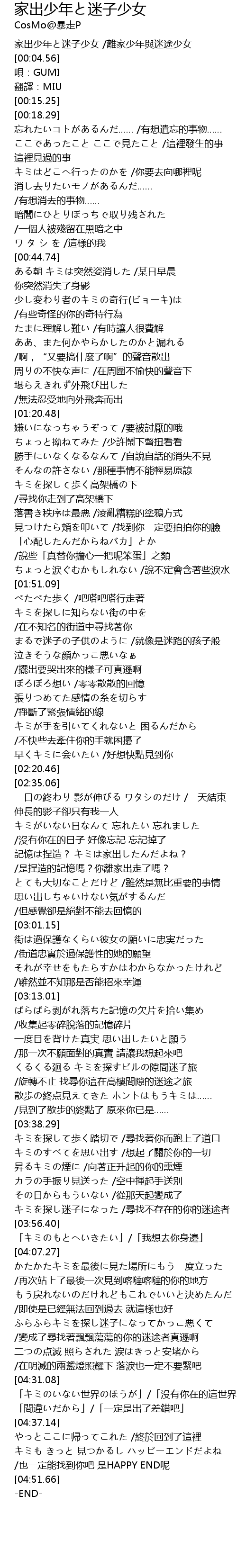 | [00:01.08] | 家出少年と迷子少女 /離家少年與迷途少女 |