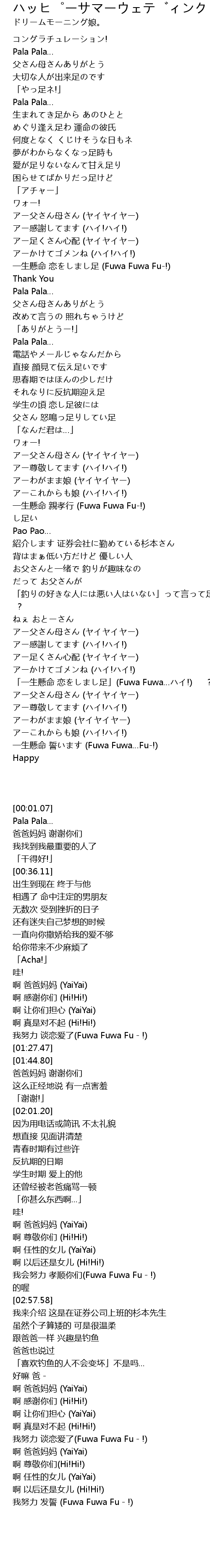 | [01:07.97] | アー父さん母さん (ヤイヤイヤー) |