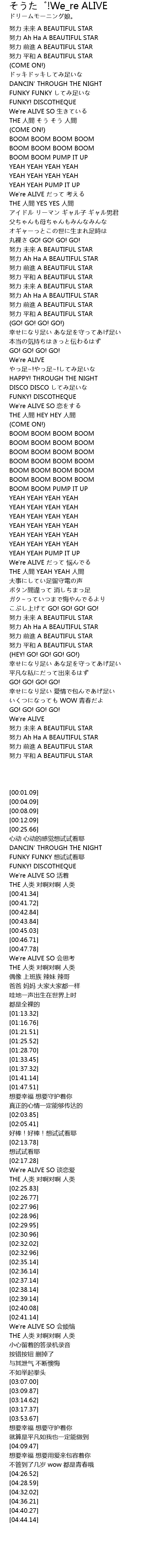| [02:42.76] | We're ALIVE だって 悩んでる |