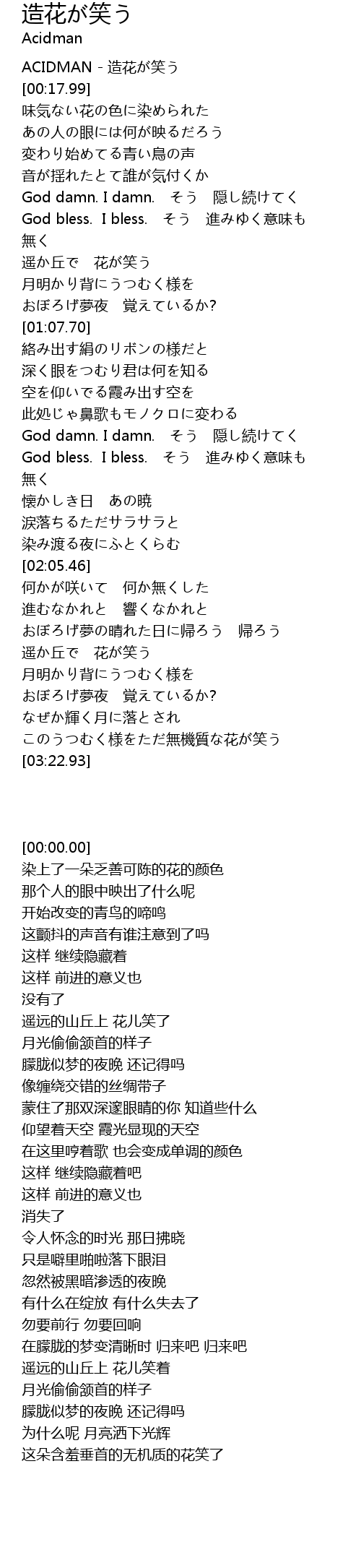 | [00:00.00] | ACIDMAN - 造花が笑う |