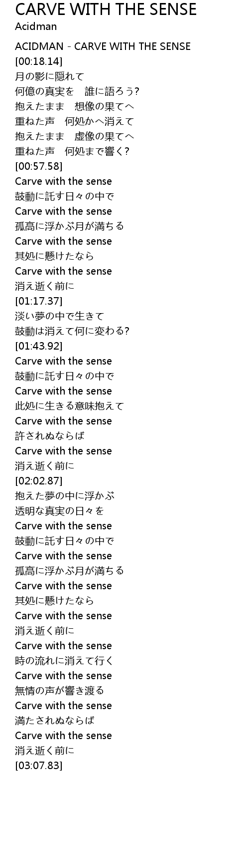 | [00:00.00] | ACIDMAN CARVE WITH THE SENSE |