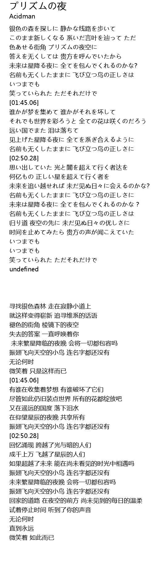 | [00:42.69] | 色あせる街角 プリズムの夜空に |