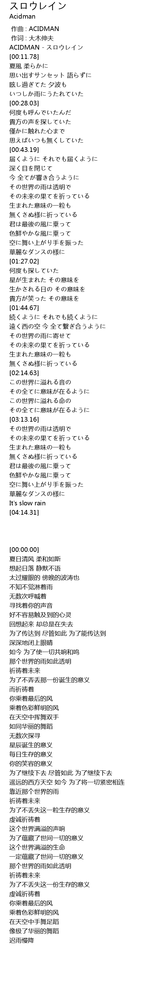 | [00:00.00] | ACIDMAN - スロウレイン |