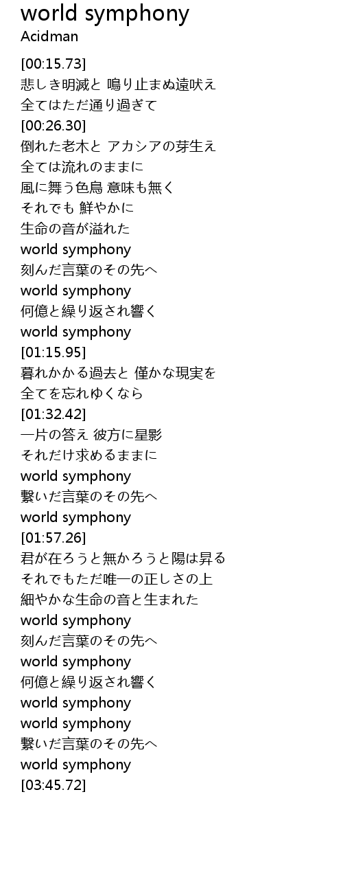 | [03:15.44] | world symphony |