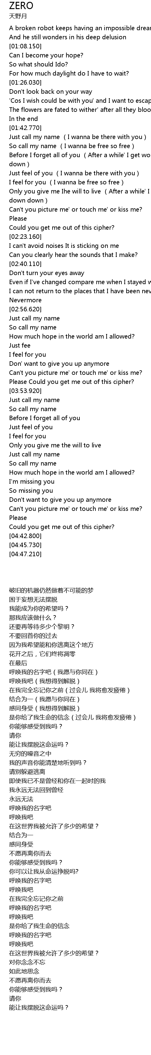 | [01:47.570] | Before I forget all of you (After a while' I get worn down down down) |