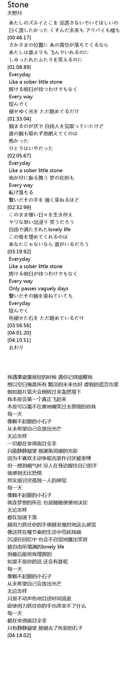 | [01:11.41] | Like a sober little stone |