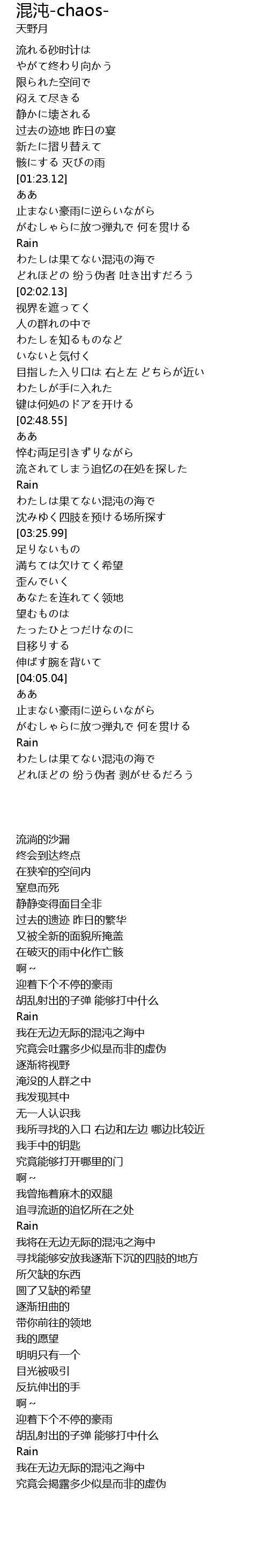 | [04:26.65] | わたしは果てない混沌の海で |