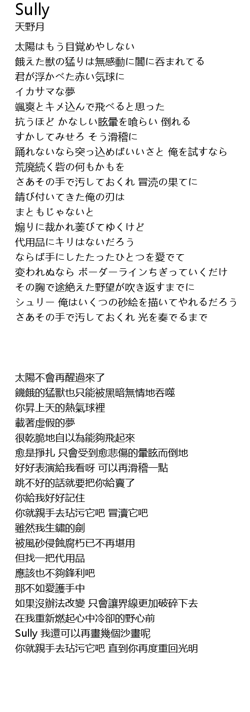 | [00:32.170] | 太陽はもう目覚めやしない |