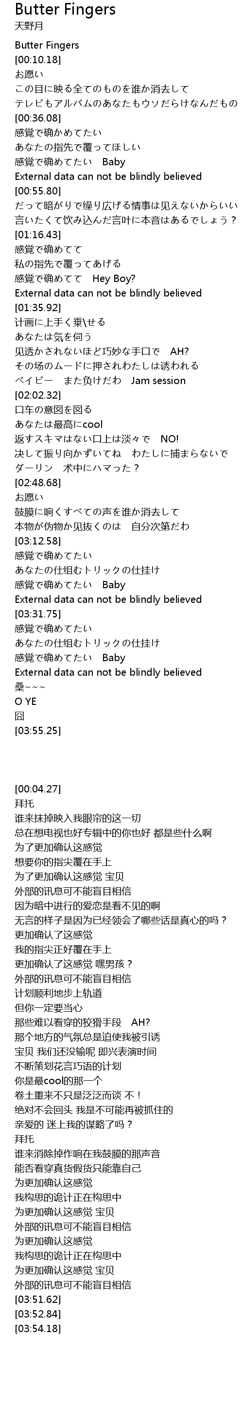 | [01:26.06] | 感覚で确めてて Hey Boy? |