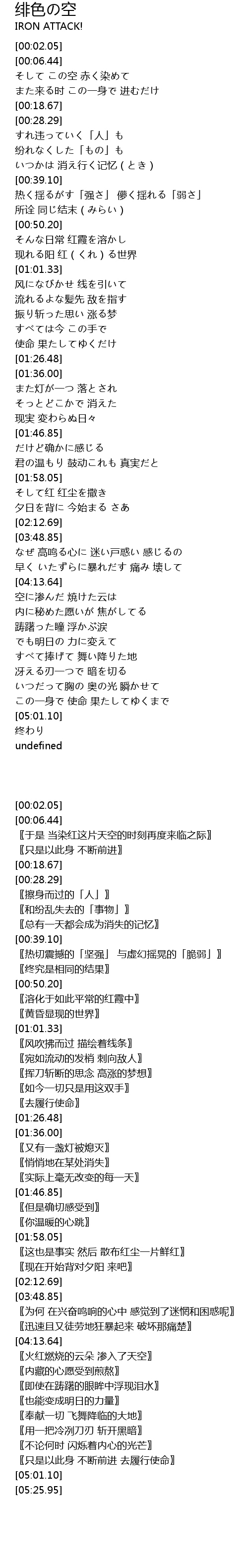 | [04:53.44] | この一身で 使命 果たしてゆくまで |