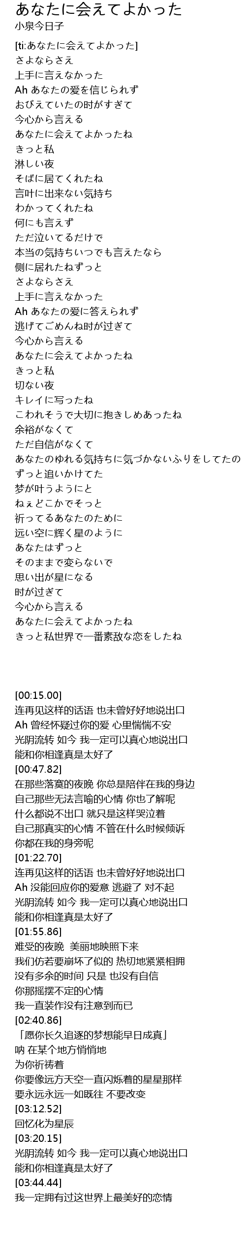 | [00:41.76] | あなたに会えてよかったね |