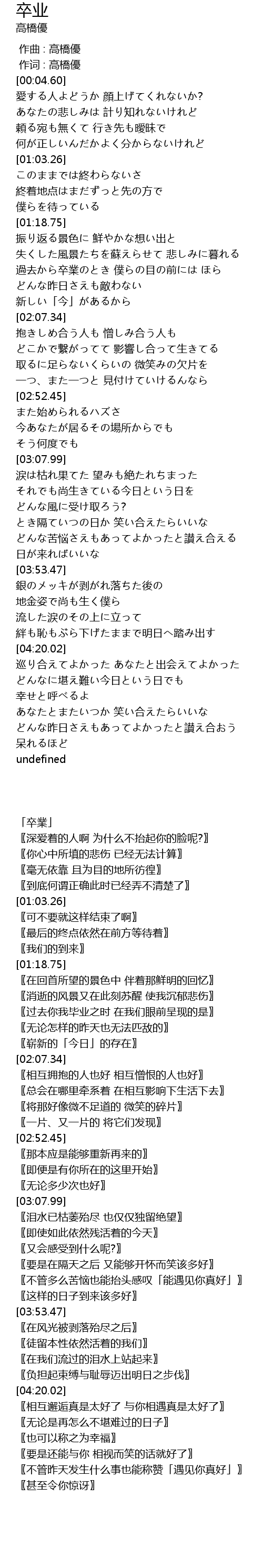 | [00:01.00] | 作词 : 高橋優 |