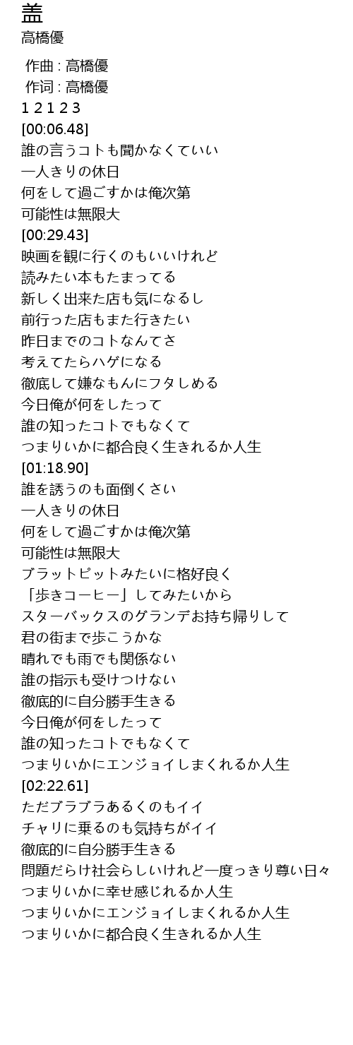 | [02:05.66] | 徹底的に自分勝手生きる |