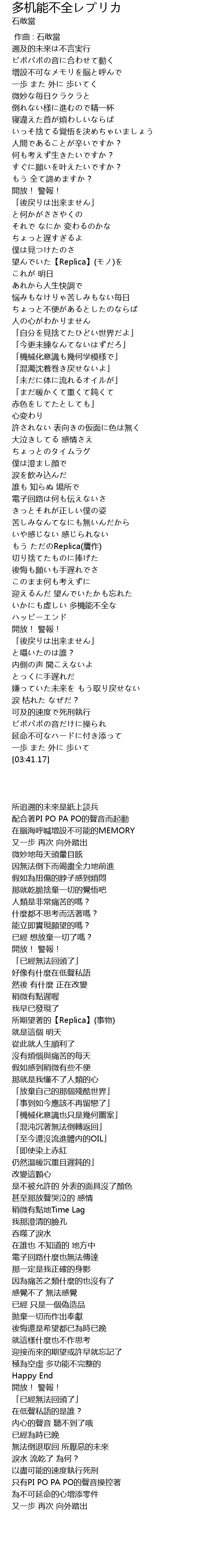 | [02:47.03] | もう ただのReplica(贋作) |