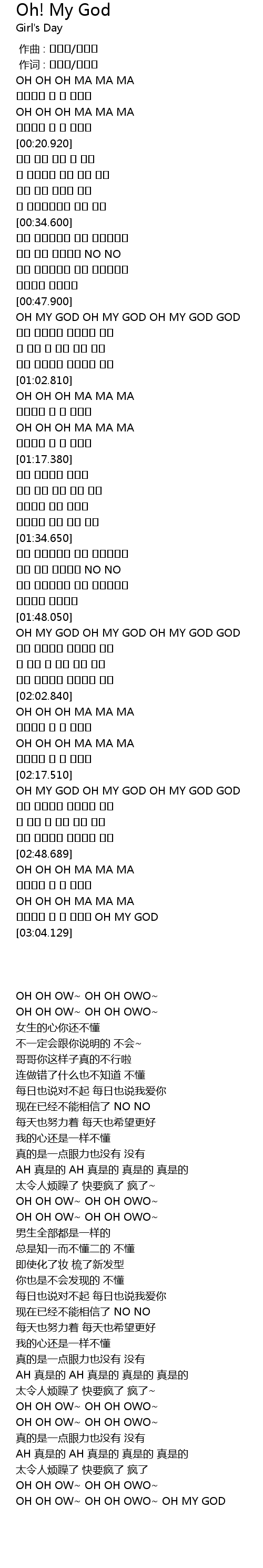 | [03:00.599] | 어우워우 어 어 우워우 OH MY GOD |