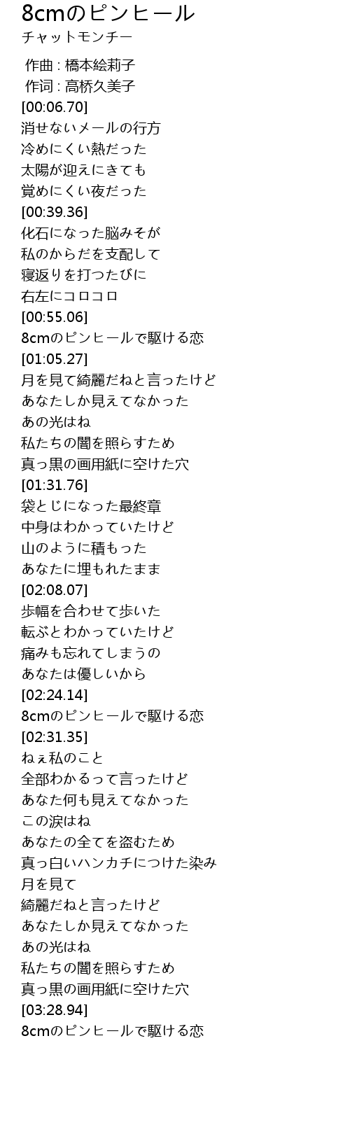 | [03:42.44] | 8cmのピンヒールで駆ける恋 |
