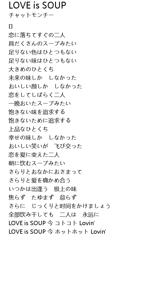 | LOVE is SOUP 今 ホットホット Lovin' |