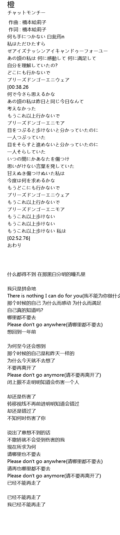 | [02:11.93] | プリーズドンゴーエニウェア |