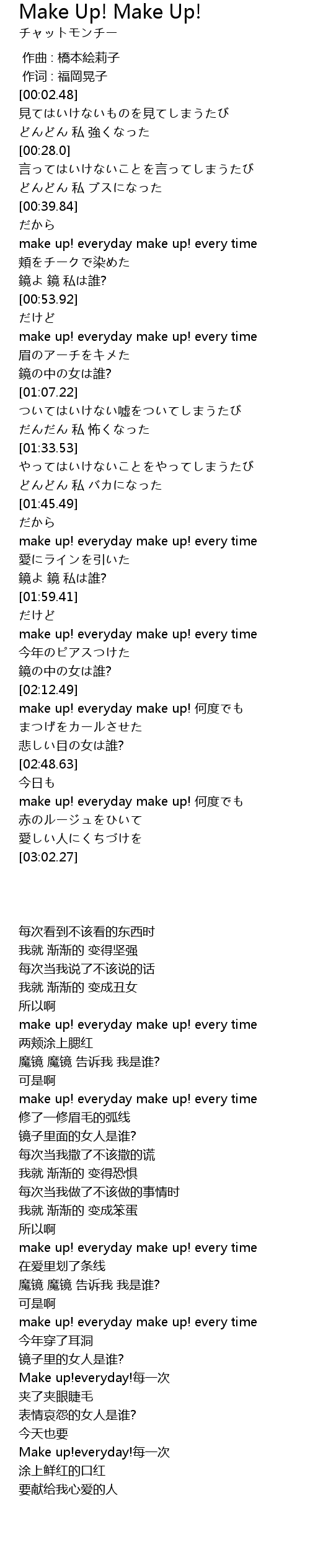 | [02:37.42] | make up! everyday make up! 何度でも |