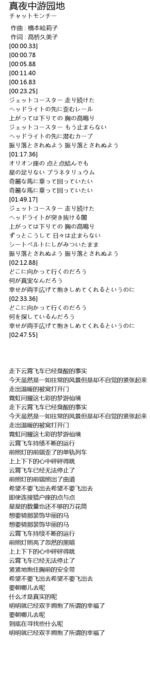 | [00:49.31][00:16.83] | ネオン輝く 虹色のメリーゴーランド |